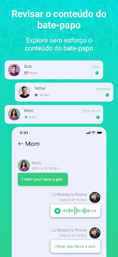 Rastrear e visualizar mensagens de mídia aplicativo de bate-papo no dispositivo alvo, incluindo fotos, vídeos e documentos.