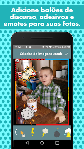 ✓ Todos os adesivos, emoticons, texto e bolhas de fala podem ser movidos em qualquer lugar.