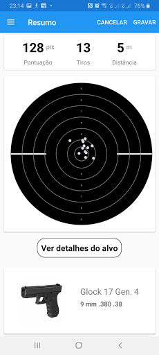 A qualquer momento, o atirador pode acessar e ver como ficaram os agrupamentos dos alvos de suas sessões de tiro.