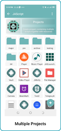 O Jascript é um aplicativo para construir aplicativos e jogos Android usando tecnologias da Web, como HTML, CSS, JavaScript, PHP, JQuery, etc. O uso de HTML, CSS e JavaScript é possível criar aplicativos locais e da Web para atender às necessidades específicas a qualquer hora. Os aplicativos JavaScript Local Android podem ser convertidos em aplicativos Android autônomos (APK) enquanto os aplicativos da Web HTML podem ser carregados em um site como um aplicativo da Web. Para melhorar o jogo Jasript está entrando com uma biblioteca de jogos 3D, a fim de criar jogos no Android 3D. Você também pode usar o JAScript App para criar jogos HTML5 2D e 3D. Codificação e teste neste editor de código é mais rápido, já que nenhuma pré-instalação é sempre necessária. No console de JS, você pode executar aplicativos do console do JavaScript usando o suporte do Engine ES6 do V8 JavaScript.
