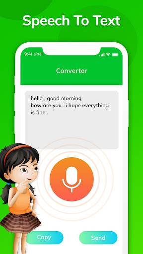 Aplicativos de fala para texto facilitam e não lutam para Anote textos curtos e longos. O conversor de fala para texto é escrito texto de nota de voz simples por voz e esse texto convertido em formato de voz nota texto facilmente compartilhando em qualquer mensageiro. Fala para o texto Converte todos os textos mostram suas conversas no idioma selecionado.