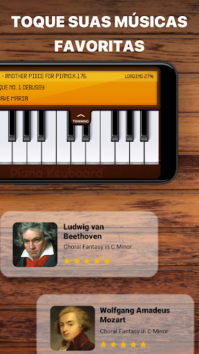 O teclado virtuoso clássico inteligente com função de seleção de notas, acordes e teclas de piano irá impressioná-lo com seus sons surpreendentes enquanto você toca! 🎹 Aprender musica e teclado de piano nunca foi tão fácil em jogos de piano: o teclado som de piano irá ajudá-lo a aprender musicas offline, peças clássicas famosas e improvisar no teclado do piano. 🎼 Se você adora cantar ou quer fazer seus próprios ringtones como um online pianist, provavelmente tentará ser um virtual dj você não vai precisar de um music player! 🧑🎤