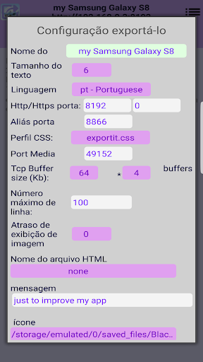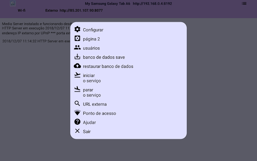 O servidor HTTP pode ser utilizado através da Internet a partir da sua rede Wi-Fi apenas configurar um número de porta externa na configuração. Se for fornecido um valor não nulo, o aplicativo tenta configurar seu Internet Gateway dinamicamente pelo UPnP, caso contrário você deve configurá-lo manualmente.