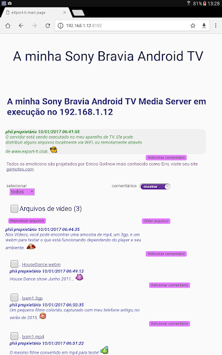 Mas se você tem um dispositivo Android TV, então você também pode executar o servidor e usar o cliente diretamente em seu aparelho de TV, permitindo a troca completa de arquivos entre telefones, tablets e este aparelho de TV.