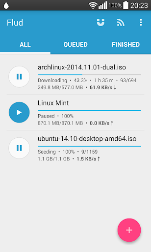 Flud é um cliente de BitTorrent simples e elegante para android. O poder do protocolo BitTorrent está agora na palma de suas mãos. Compartilhe e baixe arquivos facilmente direto do seu telefone ou tablet.