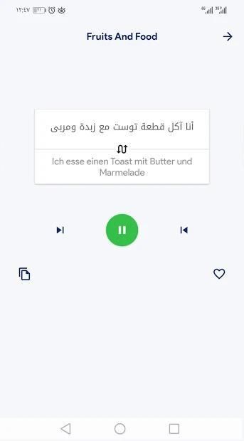 Display sentences and words in German and its meaning in Arabic and the possibility of copying and save favorites