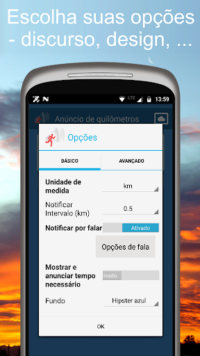 O Anúncio de quilômetros é um conta-quilómetros que anuncia a cada um quilômetro (ou dois quilômetros), quanto você já precorru a caminha, correr, ou a andar de bicicleta – vôce não tem de mover o seu smartphone (telemóvel/celular) do seu bolso!