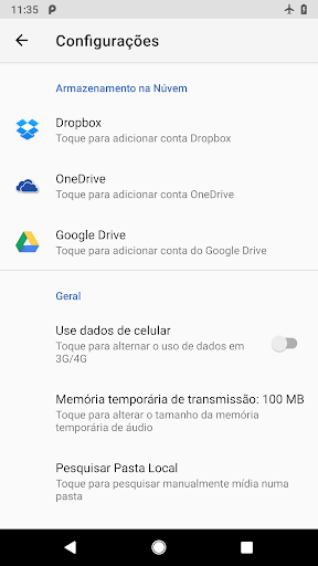 ♬ Descarga ou streaming de música diretamente da sua Dropbox, OneDrive e Google Drive sem restrições arbitrárias