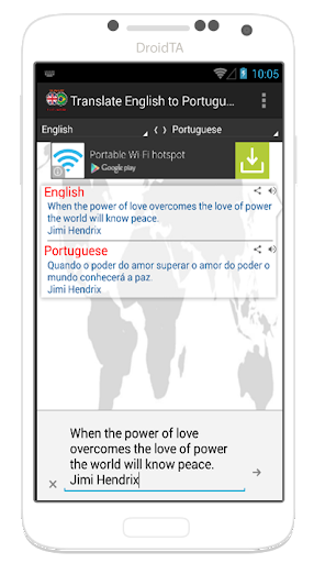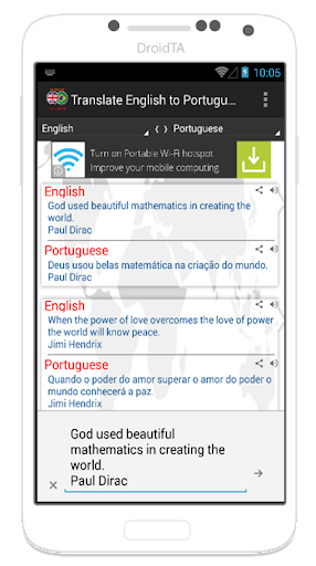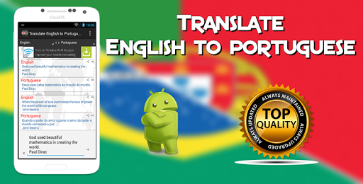 Traduzir Inglês para Português é fácil agora. Este aplicativo pode ajudá-lo a traduzir entre Inglês e Português muito rápido e fácil. Você pode usar esse aplicativo para o seu estudo, viajar ou outro propor.