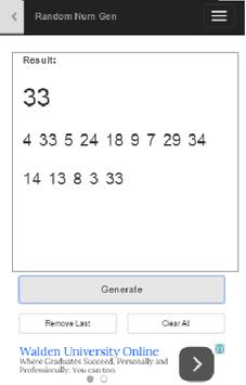 > Adds your generated random number to a list of your previous numbers so you can see them all, good for lottery.