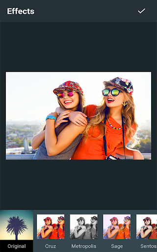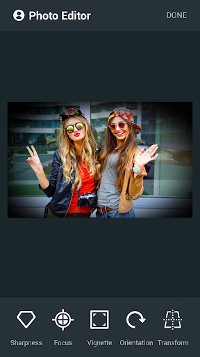 Only photo needs to be selected and get large varieties of photo effects, overlays, enhances options to beautify your picture. You can also use red eyes removal option in this pic Editor Tool and also you can change the orientation of the picture and you can transform the photo horizontally or vertically and much more included and finally it's having option to share your pictures instantly to Facebook, Instagram or tap to save.