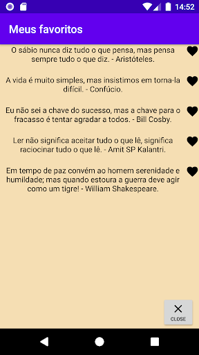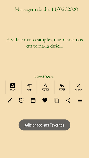 Possui ainda uma seção exclusiva de favoritos para você poder salvar e guardar suas frases e mensagens prediletas.