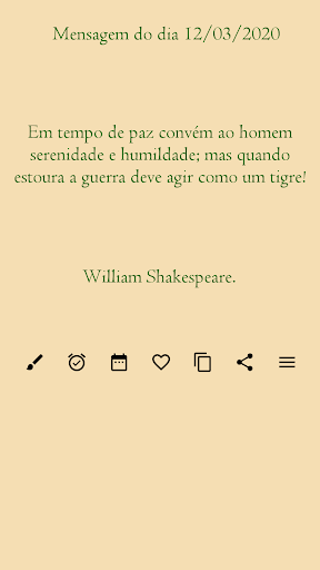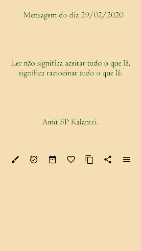 Possui recurso de compartilhamento, para que você possa enviar as mensagens preferidas para suas mídias sociais e seus amigos. Seja como texto ou como imagem.