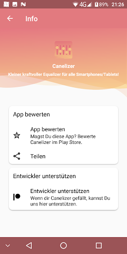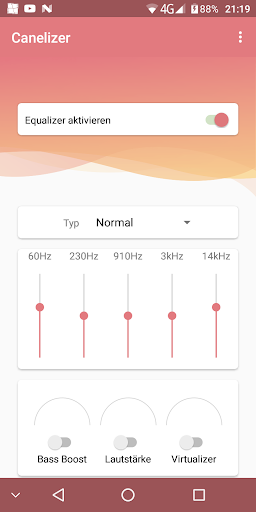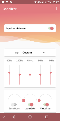 5-Band Equalizer für alle Smartphones und Tablets. Mache den Sound deines Geräts, wie er dir gefällt. Canelizer hat klassische Presets, einen Bass Boost, Möglichkeit der Lautstärkeanhebung und einen Virtualizer. Bitte gehe mit der Lautstärkeanhebung sorgsam um, insbesondere wenn Du Kopfhörer benutzt.