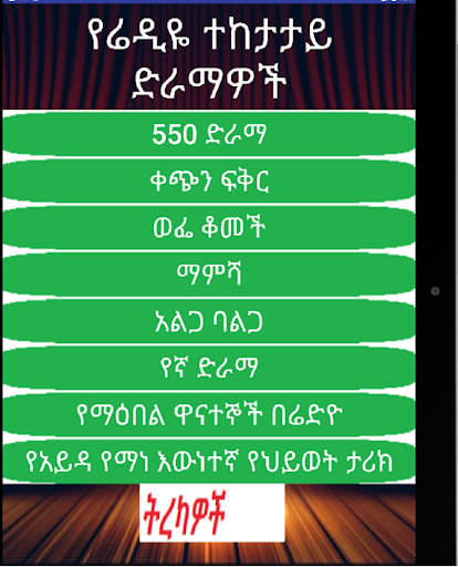 የአማርኛ ቲቪ ድሯማዎች የአማርኛ ሬዲዬ ድሯማዎች የአማርኛ መጽሐፍ ትረካዎች