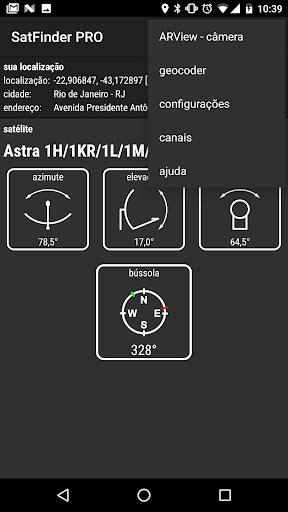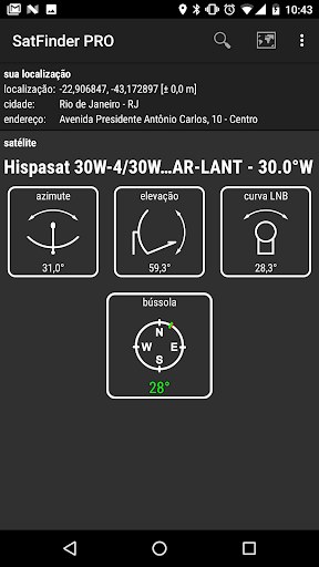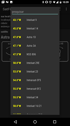 Programa que facilita a configuração de antenas via satélite. Com base na localização do GPS ou endereço inserido o aplicativo encontra o ângulo de elevação e azimute da antena via satélite.