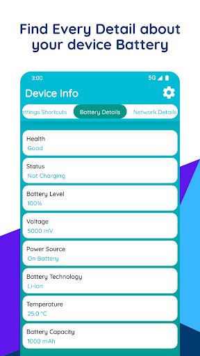 Usando as informações do dispositivo, você pode acessar instantaneamente a maioria dos detalhes do seu dispositivo como: