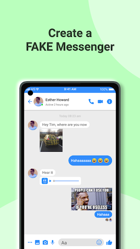 ou talvez você só queira fazê-los rir instalando este bate-papo falso em seu telefone Android. Com o texto falso de mensagem, você pode criar conversas falsas com qualquer pessoa, em qualquer lugar do mundo. Qualquer coisa de uma conversa privada com um amigo ou amante mais próximo a uma conexão casual com um colega de trabalho pode ser construído. Você pode até agir como se recebesse uma mensagem do seu cônjuge, que iniciará uma conversa em seu telefone. Este é um dos aplicativos de mensagens de texto falsificadoras mais populares.