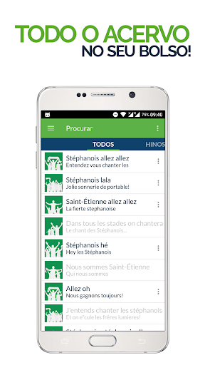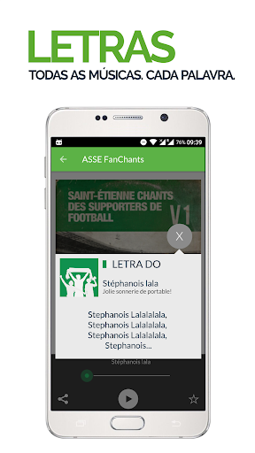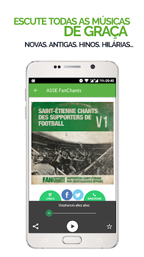 para serem tocadas onde e quando você quiser, mandar para os amigos e usar como toque do seu telefone. Receba alertas de novos cantos do Saint-Etienne e use o recurso de gravação do app para enviar novos cantos.