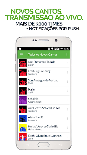 “FanChants é um app que armazena mais de 20.000 cantos de mais de 3,000 times do mundo todo. Do provocativo ao chato, do folclórico ao engraçado, os cantos são uma amostra de como os torcedores colocam um estádio abaixo.”