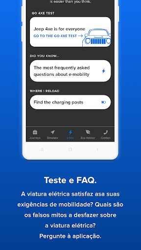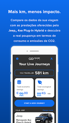 Ative a aplicação durante as suas viagens de carro e descubra quanto pouparia noa novos Jeep® Renegade e Compass 4xe Plug-In Hybrid, tanto em termos de consumos cmo de emissões de CO2.