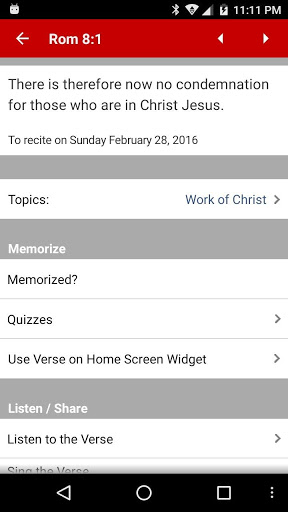 • Adicionar qualquer verso que você quiser usando " Meus versículos "e organizá-los usando tópicos, tags e categorias. Adicione versos em ESV instantaneamente; Copie facilmente Outras traduções de Biblegateway.com.