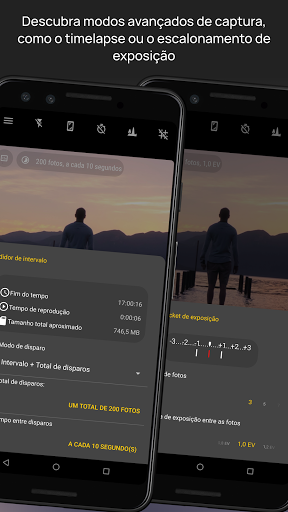 ● Modo de escalonamento de exposição automático: até 9 fotografias com espaçamento de exposição personalizado. Agora suporta captura instantânea mesmo com JPEG DNG em milhares de dispositivos.