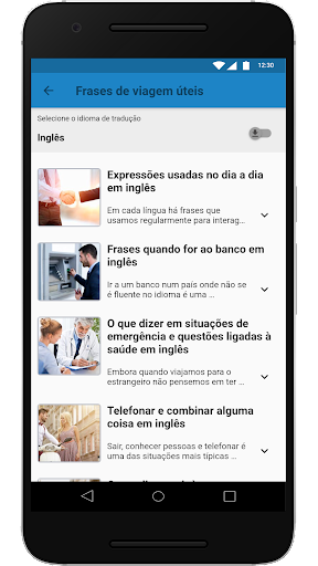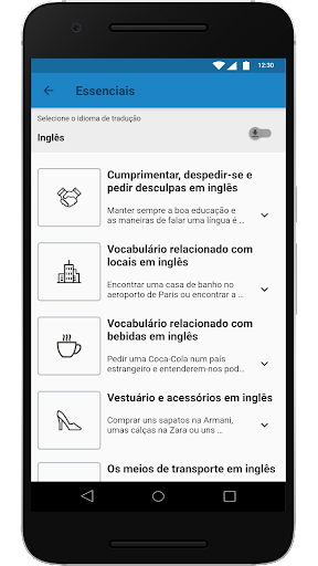 O conteúdo é apresentado em duas secções: Essenciais e Frases Úteis de Viagem, cada uma contendo diferentes categorias relevantes quando em viagem. No Essenciais há um vocabulário útil para situações diárias, enquanto que no Frases Úteis de Viagem há frases úteis para situações particulares.