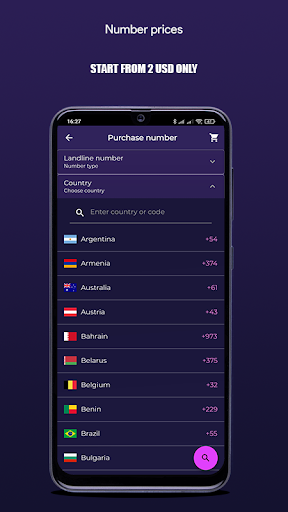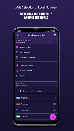 - Números fixos e móveis virtuais de mais de 85 países (EUA, Reino Unido, França, Polônia, Rússia, Israel, Espanha, Alemanha, Filipinas e muitos outros).