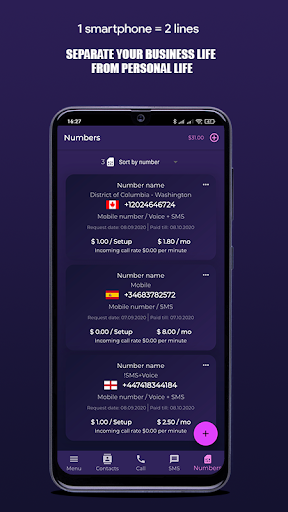 Mantenha sua vida pessoal e comercial separada com um número comercial dedicado como um segundo telefone em seu smartphone.