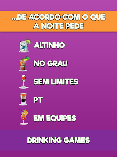 E centenas de categorias: Rodadas Temáticas, Competições de Quiz, Eu Nunca, O Que Você Faria Se, Rodadas de Votação e muitas outras formas de se divertir.