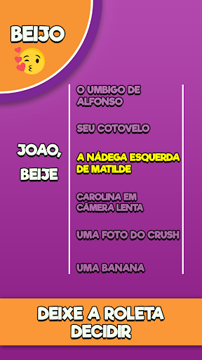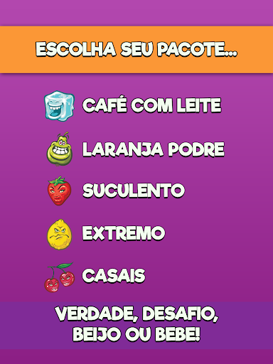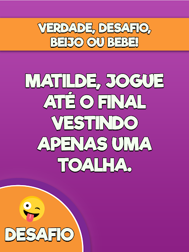 Esse jogo proporciona uma combinação que você nunca viu antes: conteúdo original, desafios inacreditáveis, mas, o mais importante, um novo conceito que permite bagunçar e misturar qualquer festa: a escolha entre verdade, desafio, drink OU beijo.