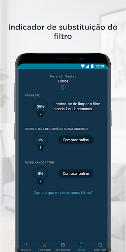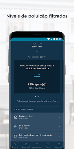 - VEJA O NÍVEL DE POLUIÇÃO FILTRADA: esteja informado sobre os níveis de poluição filtrados pelo seu purificador. Para melhor compreensão, as partículas finas serão traduzidas em cigarros e os gases tóxicos em produtos domésticos.