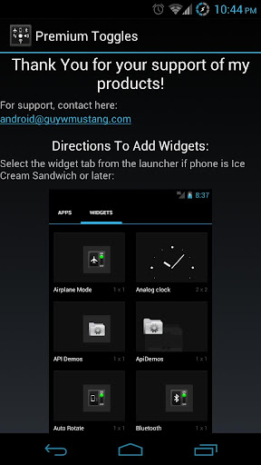Este pacote ajuda a apoiar o desenvolvedor e também inclui um aplicativo para mostrar novatos como adicionar widgets e fornecer informações de contato para suporte.