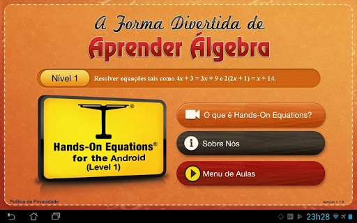 Hands-on Equations é a perfeita primeira introdução à álgebra para alunos do ensino fundamental e médio. Estes alunos não só poderão se divertir e se fascinar com o programa, como também terão sua autoestima drasticamente aumentada conforme vão se saindo bem nas equações algébricas de visual sofisticado.