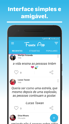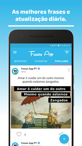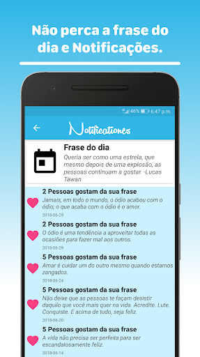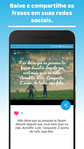 Aproveite o melhor e mais divertido aplicativo de frases em português na Google Play Store. Descubra as melhores frases de amor, motivação, sabedoria, amizade, vida, humor e muito mais para compartilhar com seus amigos ou aquela pessoa especial. Receba notificações diárias que alegram o seu dia e fornecem inspiração e motivação.