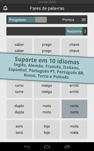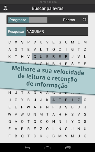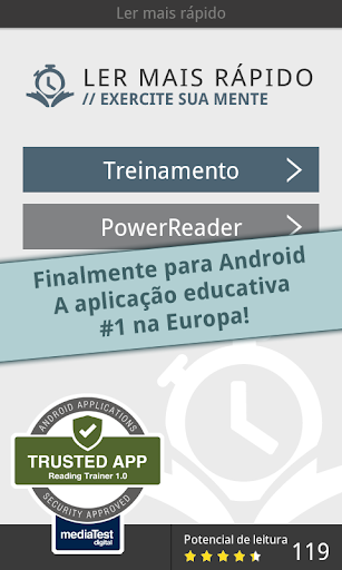 Ler mais rápido melhora sua velocidade de leitura e porcentagem de retenção com 12 exercícios desafiantes e divertidos. A popular app Ler mais Rápido está finalmente disponível para Android!
