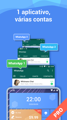 · As mensagens da conta do aplicativo clonado são enviadas de forma completamente independente e não serão confundidas com sua primeira conta.