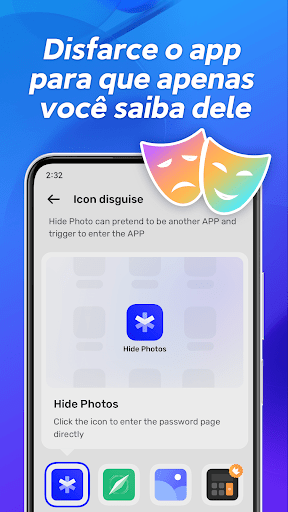 Utilize cofres de fotos para esconder suas fotos e vídeos privadosVocê tem alguma foto ou vídeo privado que deseja manter em segredo?Quer uma maneira mais segura e confiável de proteger suas fotos e vídeos privados?Um cofre seguro para fotos no seu dispositivo, onde pode ocultar fotos e vídeos pode resolver este problema.O "Ocultar Fotos" fornece um cofre seguro e confiável em teu dispositivo. Ele possui uma gama de recursos de segurança para ajudar a proteger suas fotos e vídeos privados.Com a "Ocultar Fotos", você pode: