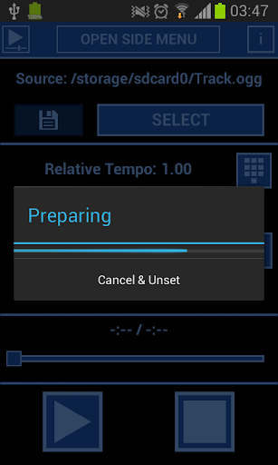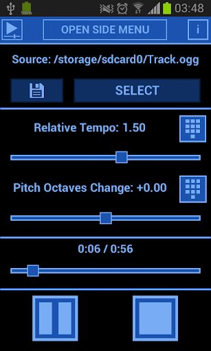 To play modified track just click "SELECT" button and choose track from music library or by browsing your device.