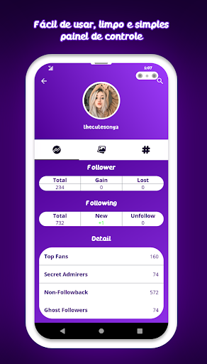 Igeye é fácil de usar e livre, não há surpresas! A versão gratuita vem com uma ampla gama de estatísticas interessantes: quem viu meu perfil, pare de seguir relatórios, gosta de análise, histórias ativas, publicações marcadas excluídas ... Leia mais informações Se você precisar de ajuda: