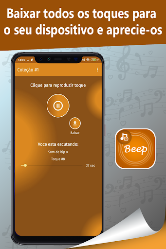 Agora você está na Play Store disponível para baixar nosso novo aplicativo toques bip gratuito. Faça o download agora e aproveite todo o conteúdo. Possui uma excelente coleção de toques, basta escolher seu toque favorito e personalizá-lo no seu dispositivo Android para usá-los como toques, tons de SMS, alarmes ou notificações.