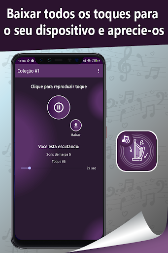 Agora você está na Play Store disponível para baixar nosso novo aplicativo toques de harpa gratuito. Faça o download agora e aproveite todo o conteúdo. Possui uma excelente coleção de toques, basta escolher seu toque favorito e personalizá-lo no seu dispositivo Android para usá-los como toques, tons de SMS, alarmes ou notificações.
