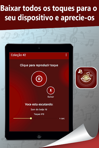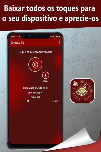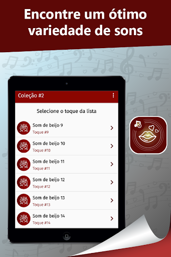 Agora você está na Play Store disponível para baixar nosso novo aplicativo toques de beijo gratuito. Faça o download agora e aproveite todo o conteúdo. Possui uma excelente coleção de toques, basta escolher seu toque favorito e personalizá-lo no seu dispositivo Android para usá-los como toques, tons de SMS, alarmes ou notificações.
