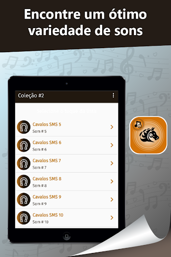 Agora você está na Play Store disponível para baixar nosso novo aplicativo toque de cavalo gratuito. Faça o download agora e aproveite todo o conteúdo. Possui uma excelente coleção de toques, basta escolher seu toque favorito e personalizá-lo no seu dispositivo Android para usá-los como toques, tons de SMS, alarmes ou notificações.