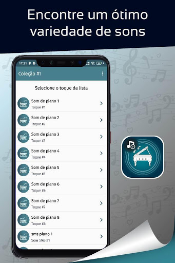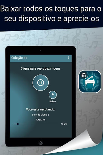 Agora você está na Play Store disponível para baixar nosso novo aplicativo Toque de piano gratuito. Faça o download agora e aproveite todo o conteúdo. Possui uma excelente coleção de toques, basta escolher seu toque favorito e personalizá-lo no seu dispositivo Android para usá-los como toques, tons de SMS, alarmes ou notificações.
