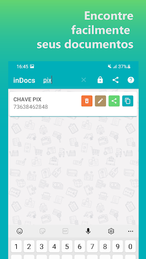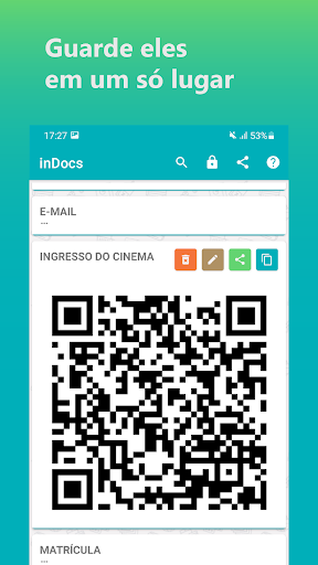 Guarde no app documentos como: números de inscrições, chave pix, matrículas, RG, CPF, carteira de trabalho, passaporte, título de eleitor, senhas, ingressos, endereços, e-mails...