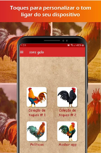 O conteúdo gráfico do aplicativo de toques de galo aproveite nosso novo aplicativo com tons de galo para celular (use-os como toques, tons de SMS, alarme ou notificação) e aproveite esses excelentes toques, páginas gratuitas foram baixadas para uso comercial com atribuição para o autor.