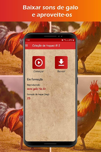Uma conexão à Internet é necessária para o bom funcionamento do aplicativo de toques de galo, aproveite nosso novo aplicativo com toques de galo para celular (use-os como toques, tons de SMS, alarme ou notificação) e aproveite estes excelentes toques. Ele não funciona corretamente sem uma conexão de internet ou de dados.