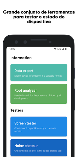Castro tem em estoque um grande conjunto de ferramentas que ajudam a testar o status do dispositivo, por exemplo, "Exportação de dados", que permite salvar todas as informações em um arquivo para uso posterior ou "Testar tela", que permite verificar a operabilidade da tela do dispositivo.